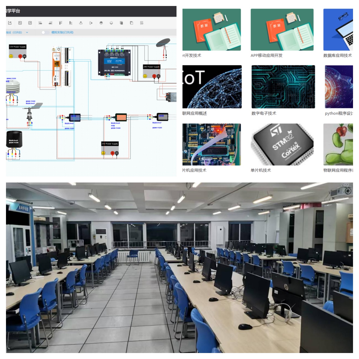 实训室建设:物联网应用技术专业配备了高性能的实训室和先进的网络课程平台。通过软硬件仿真的有机结合,以实践操作为主、理论知识为辅的教学模式,使员工在课堂上能够直观地验证所学内容,极大地提升了员工的学习兴趣。