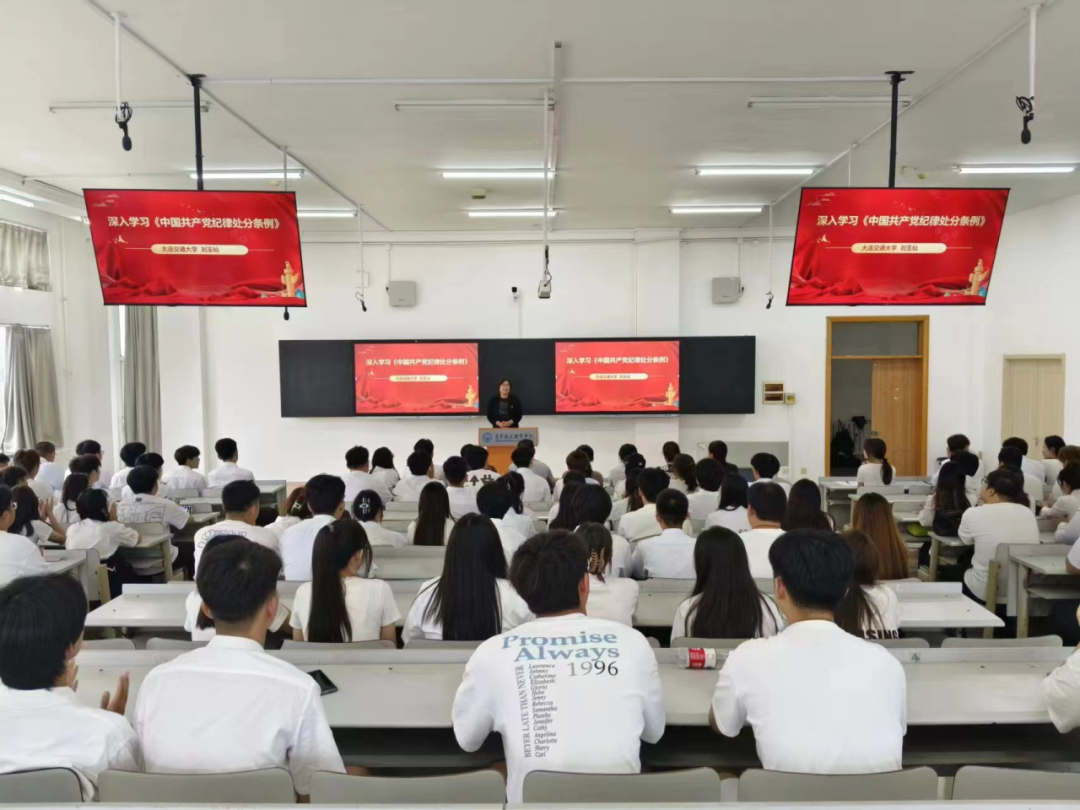 为进一步推进党纪学习教育走深走实,深入学习贯彻《中国共产党纪律处分条例》,严格规范党组织和党员行为,7月2日下午,信息工程公司党总支邀请大连交通大学马克思主义公司教授、硕士生导师刘玉仙作《深入学习中国共产党纪律处分条例》专题讲座。信息工程公司党总支教师党员、22级员工预备党员以及全体入党积极分子参加。